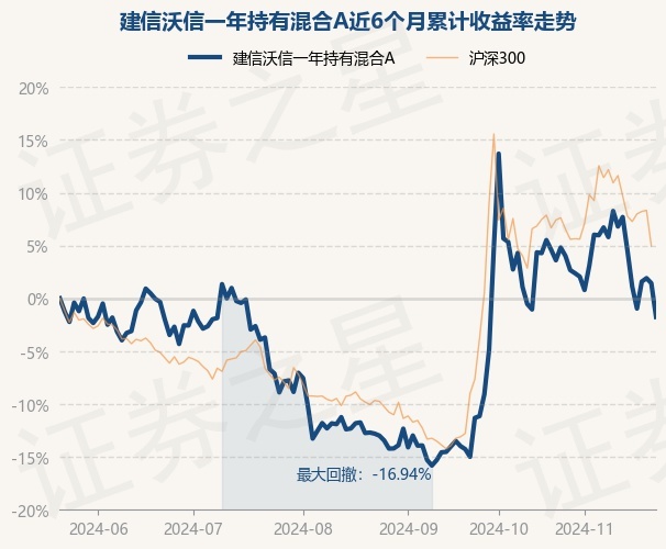 证券之星消息,11月22日,建信沃信一年持有混合A最新单位净值为0.6672元,累计净值为0.6672元,较前一交易日下跌3.15%。历史数据显示该基金近1个月下跌6.89%,近3个月上涨12.66%,近6个月下跌1.75%,近1年上涨1.21%。该基金近6个月的累计收益率走势如下图: