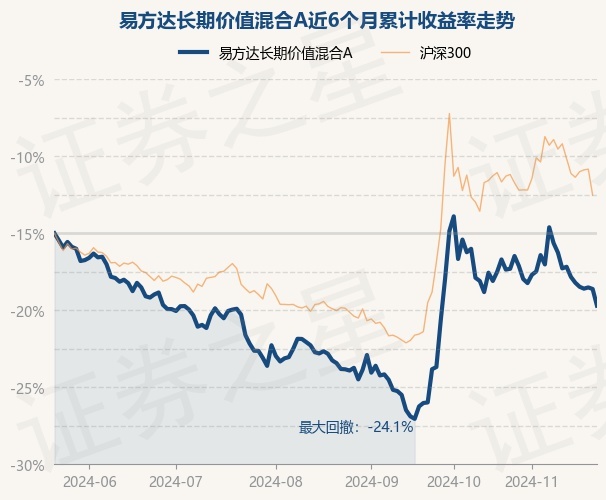 证券之星消息,11月22日,易方达长期价值混合A最新单位净值为0.8529元,累计净值为0.8529元,较前一交易日下跌2.34%。历史数据显示该基金近1个月下跌4.63%,近3个月上涨9.98%,近6个月下跌9.4%,近1年下跌2.45%。该基金近6个月的累计收益率走势如下图: