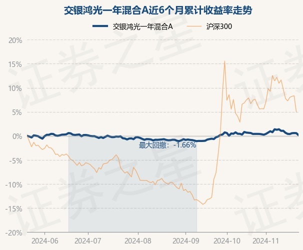 证券之星消息,11月22日,交银鸿光一年混合A最新单位净值为1.0229元,累计净值为1.0229元,较前一交易日下跌0.4%。历史数据显示该基金近1个月下跌0.47%,近3个月上涨1.07%,近6个月上涨0.17%,近1年上涨3.45%。该基金近6个月的累计收益率走势如下图:
