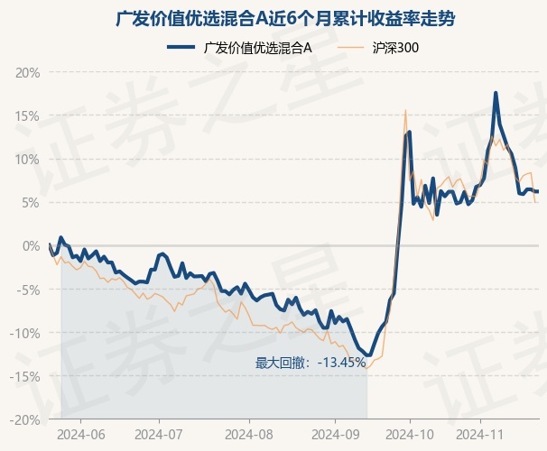 证券之星消息,11月22日,广发价值优选混合A最新单位净值为0.9829元,累计净值为0.9829元,较前一交易日上涨0.0%。历史数据显示该基金近1个月下跌2.91%,近3个月上涨11.63%,近6个月上涨3.06%,近1年上涨16.25%。该基金近6个月的累计收益率走势如下图:
