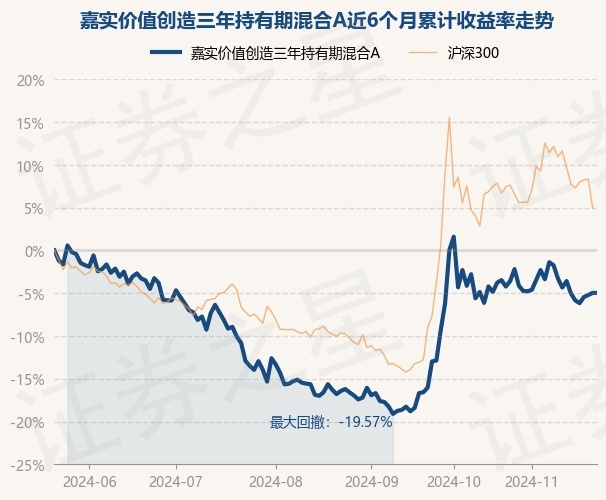 证券之星消息,11月22日,嘉实价值创造三年持有期混合A最新单位净值为0.9931元,累计净值为0.9931元,较前一交易日上涨0.0%。历史数据显示该基金近1个月下跌3.59%,近3个月上涨11.0%,近6个月下跌7.23%,近1年上涨7.81%。该基金近6个月的累计收益率走势如下图: