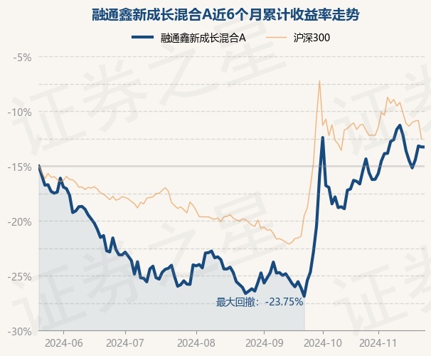 证券之星消息,11月22日,融通鑫新成长混合A最新单位净值为1.1015元,累计净值为1.1015元,较前一交易日上涨0.0%。历史数据显示该基金近1个月上涨1.46%,近3个月上涨26.9%,近6个月下跌1.18%,近1年下跌12.97%。该基金近6个月的累计收益率走势如下图: