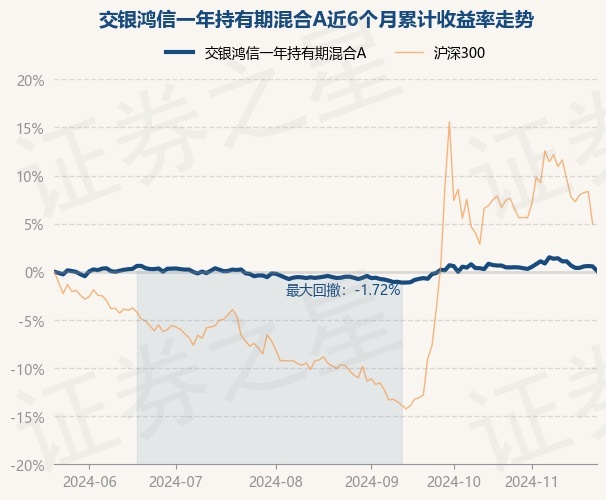证券之星消息,11月22日,交银鸿信一年持有期混合A最新单位净值为1.0192元,累计净值为1.0192元,较前一交易日下跌0.46%。历史数据显示该基金近1个月下跌0.55%,近3个月上涨0.72%,近6个月上涨0.1%,近1年上涨3.75%。该基金近6个月的累计收益率走势如下图: