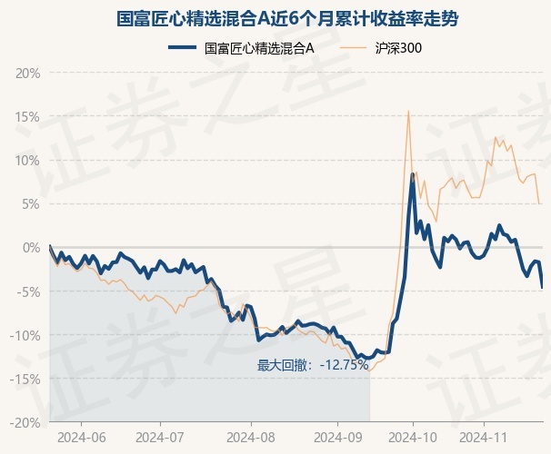 证券之星消息,11月22日,国富匠心精选混合A最新单位净值为0.8745元,累计净值为0.8745元,较前一交易日下跌2.85%。历史数据显示该基金近1个月下跌5.77%,近3个月上涨4.68%,近6个月下跌4.57%,近1年上涨5.53%。该基金近6个月的累计收益率走势如下图: