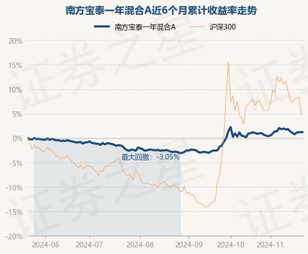 证券之星消息,11月22日,南方宝泰一年混合A最新单位净值为1.1488元,累计净值为1.1488元,较前一交易日上涨0.0%。历史数据显示该基金近1个月下跌0.66%,近3个月上涨3.47%,近6个月上涨0.53%,近1年上涨3.93%。该基金近6个月的累计收益率走势如下图: