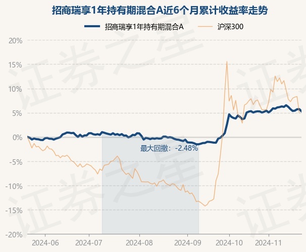 证券之星消息,11月22日,招商瑞享1年持有期混合A最新单位净值为1.0612元,累计净值为1.0771元,较前一交易日下跌0.42%。历史数据显示该基金近1个月下跌0.03%,近3个月上涨5.44%,近6个月上涨5.3%,近1年上涨6.18%。该基金近6个月的累计收益率走势如下图: