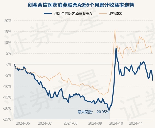 证券之星消息,11月22日,创金合信医药消费股票A最新单位净值为0.4936元,累计净值为0.4936元,较前一交易日下跌4.38%。历史数据显示该基金近1个月下跌5.3%,近3个月上涨11.6%,近6个月下跌7.27%,近1年下跌20.53%。该基金近6个月的累计收益率走势如下图: