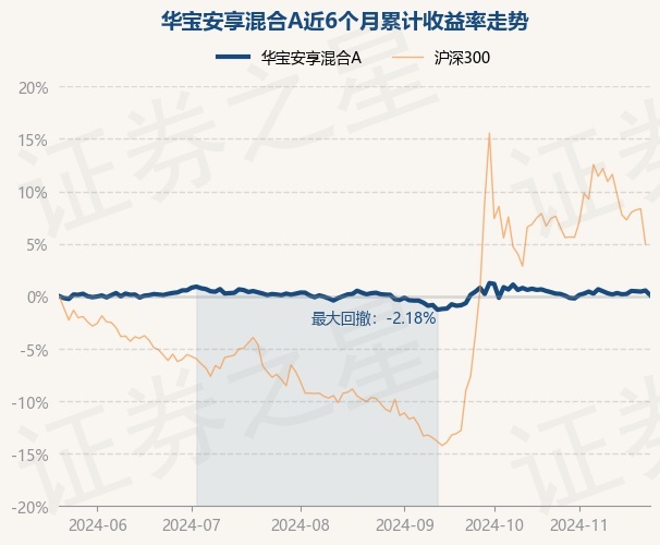 证券之星消息,11月22日,华宝安享混合A最新单位净值为1.1173元,累计净值为1.1173元,较前一交易日下跌0.45%。历史数据显示该基金近1个月下跌0.55%,近3个月下跌0.19%,近6个月上涨0.1%,近1年上涨6.34%。该基金近6个月的累计收益率走势如下图: