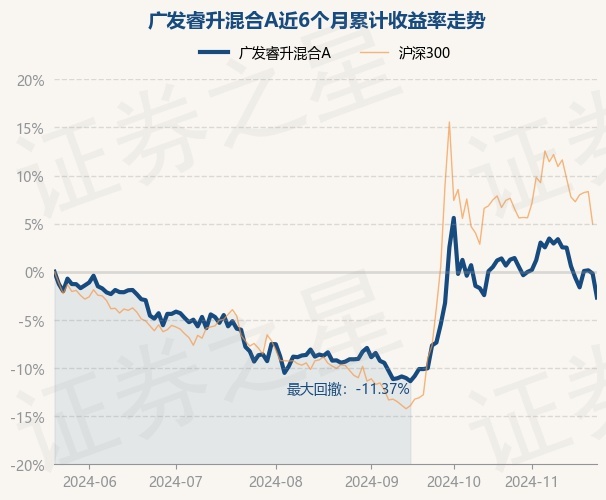 证券之星消息,11月22日,广发睿升混合A最新单位净值为0.7097元,累计净值为0.7097元,较前一交易日下跌2.5%。历史数据显示该基金近1个月下跌3.81%,近3个月上涨7.48%,近6个月下跌2.67%,近1年下跌2.67%。该基金近6个月的累计收益率走势如下图: