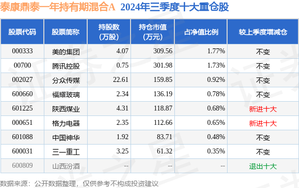 泰康鼎泰一年持有期混合A为混合型-偏债基金,根据最新一期基金季报显示,该基金资产配置:股票占净值比7.36%,债券占净值比121.33%,现金占净值比6.68%。基金十大重仓股如下: