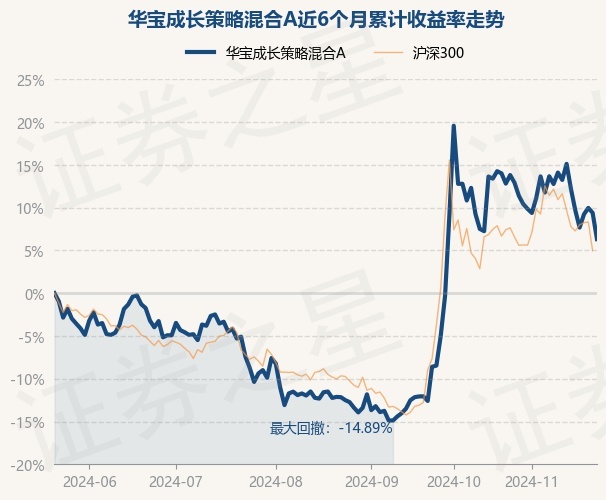 证券之星消息,11月22日,华宝成长策略混合A最新单位净值为1.4692元,累计净值为1.4692元,较前一交易日下跌2.81%。历史数据显示该基金近1个月下跌6.95%,近3个月上涨21.03%,近6个月上涨6.32%,近1年上涨12.72%。该基金近6个月的累计收益率走势如下图:
