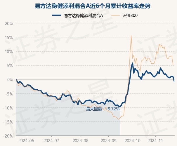证券之星消息,11月22日,易方达稳健添利混合A最新单位净值为0.9506元,累计净值为0.9506元,较前一交易日下跌1.58%。历史数据显示该基金近1个月下跌3.04%,近3个月上涨8.57%,近6个月下跌0.76%,近1年上涨3.86%。该基金近6个月的累计收益率走势如下图: