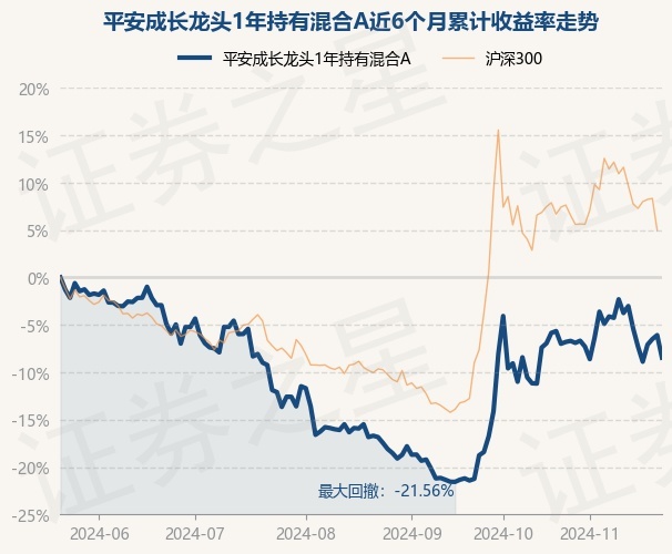证券之星消息,11月22日,平安成长龙头1年持有混合A最新单位净值为0.5756元,累计净值为0.5756元,较前一交易日下跌2.52%。历史数据显示该基金近1个月下跌2.77%,近3个月上涨10.08%,近6个月下跌8.46%,近1年下跌16.19%。该基金近6个月的累计收益率走势如下图: