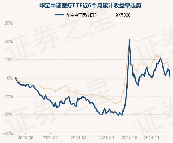 证券之星消息,11月22日,华宝中证医疗ETF最新单位净值为0.3348元,累计净值为1.0044元,较前一交易日下跌4.42%。历史数据显示该基金近1个月下跌2.65%,近3个月上涨21.52%,近6个月下跌0.8%,近1年下跌18.97%。该基金近6个月的累计收益率走势如下图: