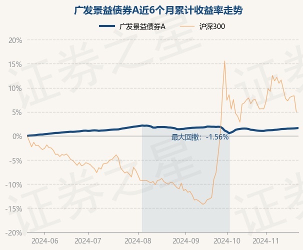 证券之星消息,11月22日,广发景益债券A最新单位净值为1.0861元,累计净值为1.0861元,较前一交易日上涨0.05%。历史数据显示该基金近1个月上涨0.2%,近3个月下跌0.09%,近6个月上涨1.64%,近1年上涨5.82%。该基金近6个月的累计收益率走势如下图: