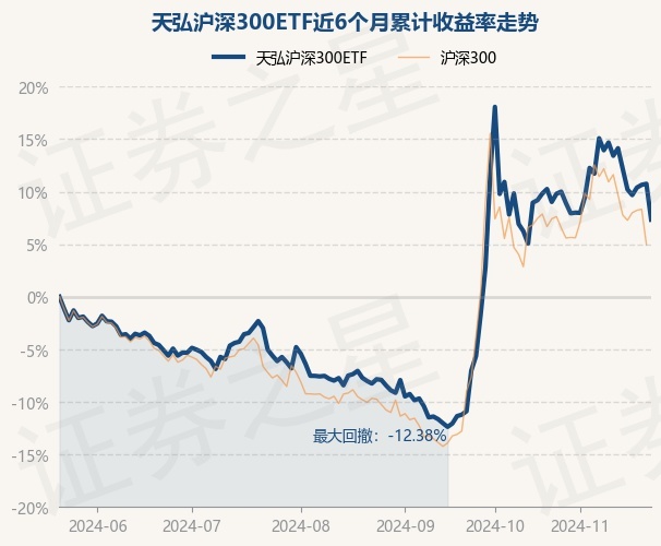 证券之星消息,11月22日,天弘沪深300ETF最新单位净值为1.0824元,累计净值为1.0824元,较前一交易日下跌3.08%。历史数据显示该基金近1个月下跌2.26%,近3个月上涨16.99%,近6个月上涨7.34%,近1年上涨11.78%。该基金近6个月的累计收益率走势如下图: