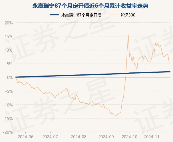 证券之星消息,11月22日,永赢瑞宁87个月定开债最新单位净值为1.0902元,累计净值为1.1722元,较前一交易日上涨0.01%。历史数据显示该基金近1个月上涨0.34%,近3个月上涨1.0%,近6个月上涨2.0%,近1年上涨3.91%。该基金近6个月的累计收益率走势如下图: