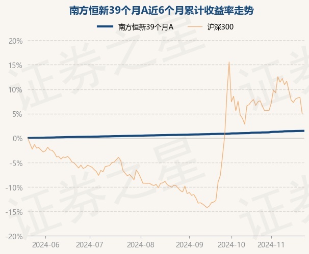 证券之星消息,11月22日,南方恒新39个月A最新单位净值为1.0401元,累计净值为1.1941元,较前一交易日上涨0.01%。历史数据显示该基金近1个月上涨0.37%,近3个月上涨0.82%,近6个月上涨1.47%,近1年上涨2.61%。该基金近6个月的累计收益率走势如下图: