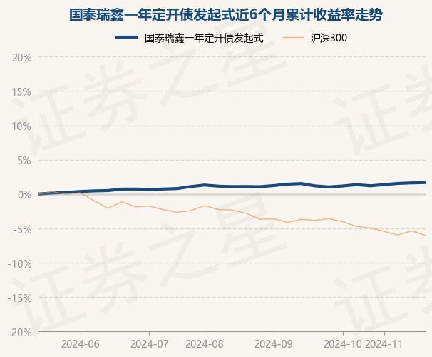 证券之星消息,11月22日,国泰瑞鑫一年定开债发起式最新单位净值为1.0429元,累计净值为1.0988元,较前一交易日上涨0.05%。历史数据显示该基金近1个月上涨0.3%,近3个月上涨0.58%,近6个月上涨1.65%,近1年上涨4.2%。该基金近6个月的累计收益率走势如下图: