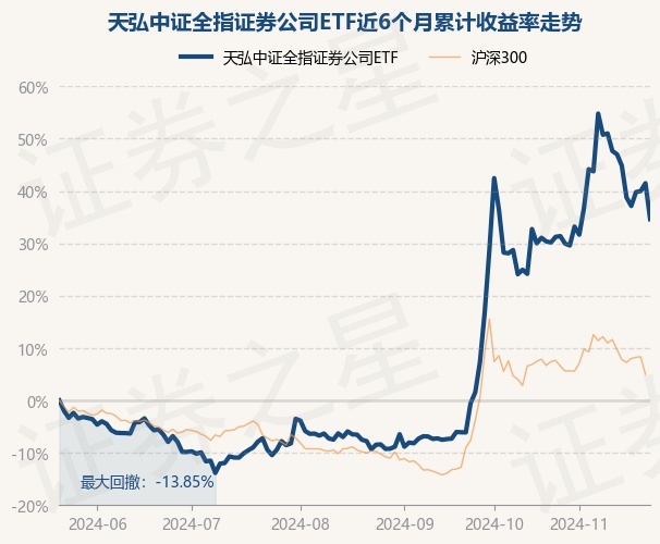 证券之星消息,11月22日,天弘中证全指证券公司ETF最新单位净值为1.0672元,累计净值为1.0672元,较前一交易日下跌4.84%。历史数据显示该基金近1个月上涨2.72%,近3个月上涨48.51%,近6个月上涨34.63%,近1年上涨21.45%。该基金近6个月的累计收益率走势如下图: