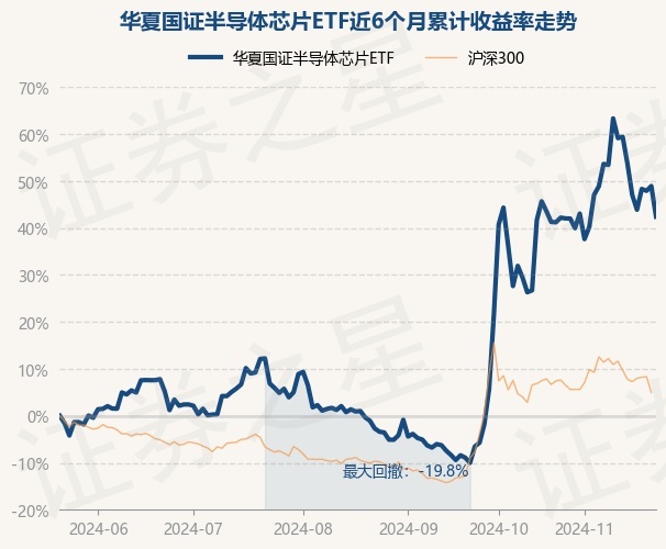 证券之星消息,11月22日,华夏国证半导体芯片ETF最新单位净值为1.181元,累计净值为1.181元,较前一交易日下跌4.37%。历史数据显示该基金近1个月下跌0.82%,近3个月上涨46.33%,近6个月上涨42.41%,近1年上涨22.09%。该基金近6个月的累计收益率走势如下图: