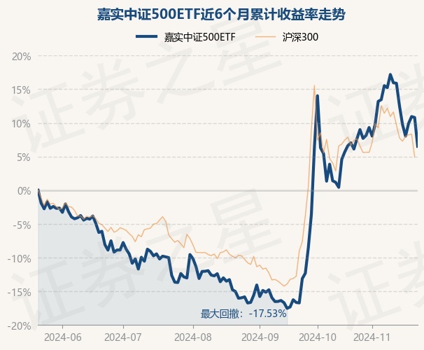 证券之星消息,11月22日,嘉实中证500ETF最新单位净值为6.0612元,累计净值为1.899元,较前一交易日下跌3.86%。历史数据显示该基金近1个月上涨155.12%,近3个月上涨223.91%,近6个月上涨171.98%,近1年上涨167.18%。该基金近6个月的累计收益率走势如下图:
