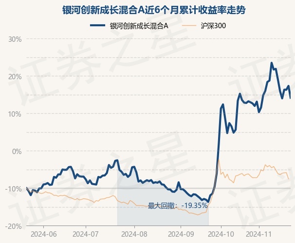 证券之星消息,11月22日,银河创新成长混合A最新单位净值为5.794元,累计净值为5.794元,较前一交易日下跌4.11%。历史数据显示该基金近1个月上涨0.8%,近3个月上涨47.64%,近6个月上涨48.34%,近1年上涨27.81%。该基金近6个月的累计收益率走势如下图: