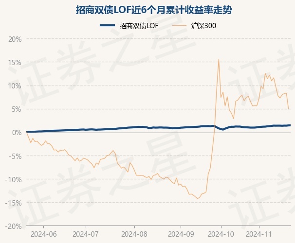 证券之星消息,11月22日,招商双债LOF最新单位净值为1.5728元,累计净值为1.7118元,较前一交易日上涨0.03%。历史数据显示该基金近1个月上涨0.35%,近3个月上涨0.49%,近6个月上涨1.46%,近1年上涨4.41%。该基金近6个月的累计收益率走势如下图: