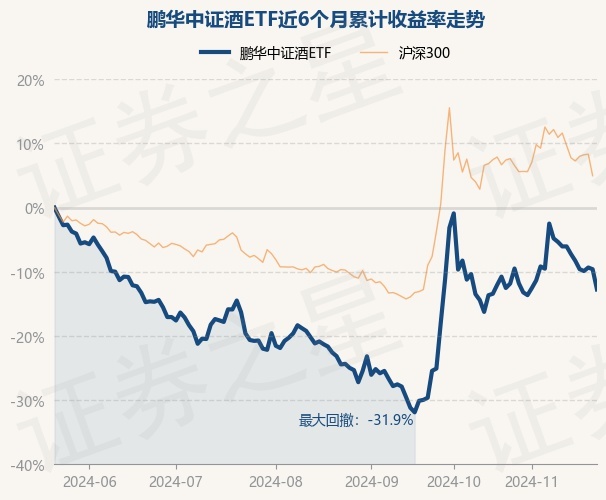 证券之星消息,11月22日,鹏华中证酒ETF最新单位净值为0.6205元,累计净值为1.941元,较前一交易日下跌3.48%。历史数据显示该基金近1个月下跌0.8%,近3个月上涨15.46%,近6个月下跌12.75%,近1年下跌17.38%。该基金近6个月的累计收益率走势如下图:
