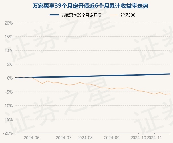 证券之星消息,11月22日,万家惠享39个月定开债最新单位净值为1.0267元,累计净值为1.1438元,较前一交易日上涨0.05%。历史数据显示该基金近1个月上涨0.3%,近3个月上涨0.74%,近6个月上涨1.39%,近1年上涨2.88%。该基金近6个月的累计收益率走势如下图: