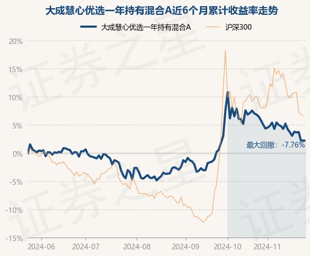 证券之星消息,11月25日,大成慧心优选一年持有混合A最新单位净值为1.1154元,累计净值为1.1154元,较前一交易日上涨0.01%。历史数据显示该基金近1个月下跌4.32%,近3个月上涨5.05%,近6个月上涨2.26%,近1年上涨16.53%。该基金近6个月的累计收益率走势如下图: