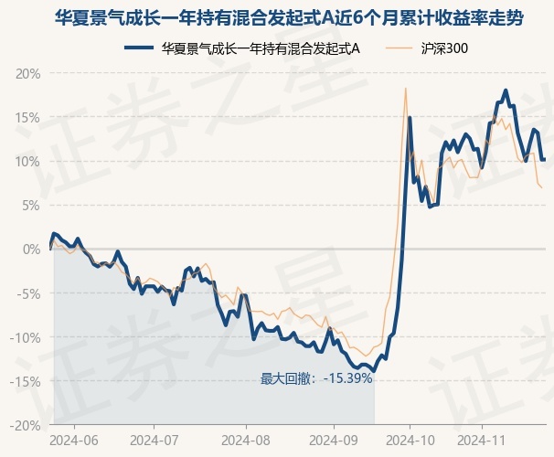 证券之星消息,11月25日,华夏景气成长一年持有混合发起式A最新单位净值为0.9148元,累计净值为0.9148元,较前一交易日上涨0.03%。历史数据显示该基金近1个月下跌1.72%,近3个月上涨23.87%,近6个月上涨10.11%,近1年上涨11.37%。该基金近6个月的累计收益率走势如下图: