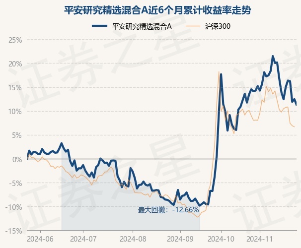 证券之星消息,11月25日,平安研究精选混合A最新单位净值为0.9497元,累计净值为0.9497元,较前一交易日上涨0.51%。历史数据显示该基金近1个月下跌0.88%,近3个月上涨23.08%,近6个月上涨12.47%,近1年上涨4.9%。该基金近6个月的累计收益率走势如下图: