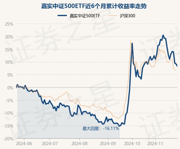 证券之星消息,11月25日,嘉实中证500ETF最新单位净值为6.0412元,累计净值为1.8927元,较前一交易日下跌0.33%。历史数据显示该基金近1个月上涨151.84%,近3个月上涨222.58%,近6个月上涨178.77%,近1年上涨166.44%。该基金近6个月的累计收益率走势如下图: