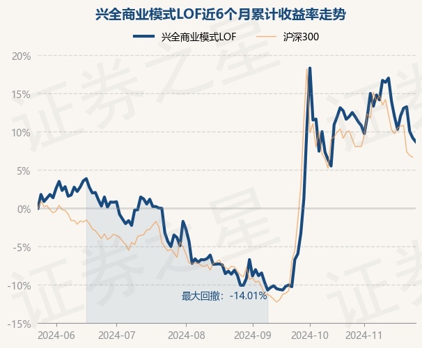 证券之星消息,11月25日,兴全商业模式LOF最新单位净值为3.325元,累计净值为4.185元,较前一交易日下跌0.78%。历史数据显示该基金近1个月下跌2.49%,近3个月上涨18.79%,近6个月上涨9.2%,近1年上涨9.02%。该基金近6个月的累计收益率走势如下图: