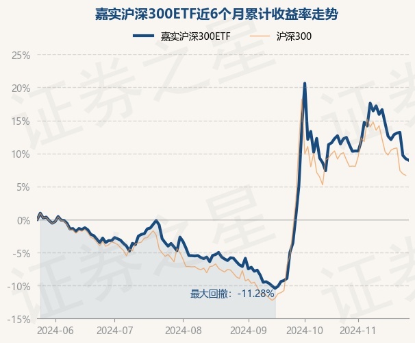 证券之星消息,11月26日,嘉实沪深300ETF最新单位净值为4.0236元,累计净值为1.8216元,较前一交易日下跌0.2%。历史数据显示该基金近1个月下跌2.9%,近3个月上涨15.75%,近6个月上涨8.96%,近1年上涨11.06%。该基金近6个月的累计收益率走势如下图: