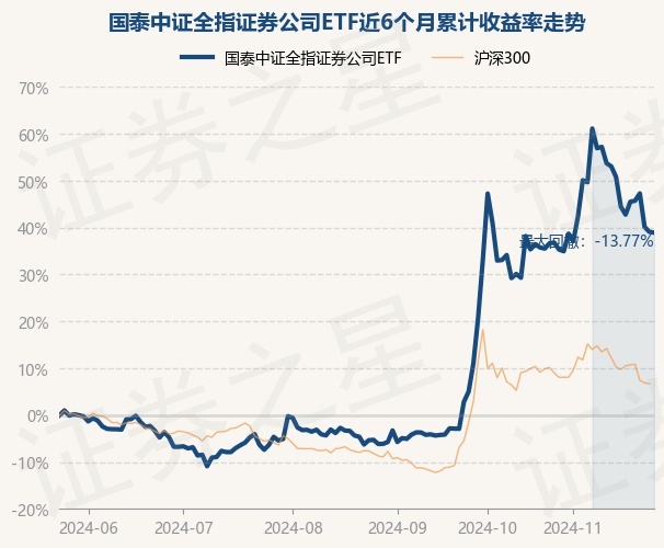 证券之星消息,11月26日,国泰中证全指证券公司ETF最新单位净值为1.1669元,累计净值为1.1669元,较前一交易日下跌0.12%。历史数据显示该基金近1个月上涨1.67%,近3个月上涨46.67%,近6个月上涨38.92%,近1年上涨22.06%。该基金近6个月的累计收益率走势如下图: