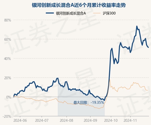 证券之星消息,11月26日,银河创新成长混合A最新单位净值为5.6915元,累计净值为5.6915元,较前一交易日下跌0.4%。历史数据显示该基金近1个月下跌0.51%,近3个月上涨46.66%,近6个月上涨51.32%,近1年上涨27.26%。该基金近6个月的累计收益率走势如下图:
