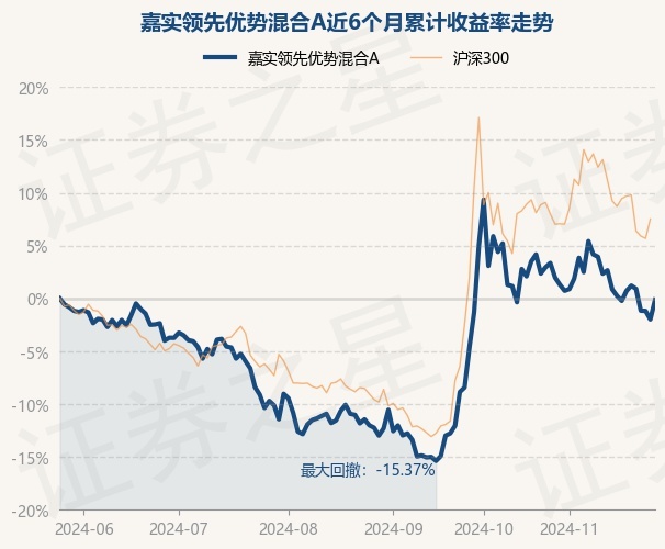 证券之星消息,11月27日,嘉实领先优势混合A最新单位净值为0.9116元,累计净值为0.9116元,较前一交易日上涨1.89%。历史数据显示该基金近1个月下跌2.99%,近3个月上涨13.79%,近6个月下跌0.13%,近1年上涨9.33%。该基金近6个月的累计收益率走势如下图: