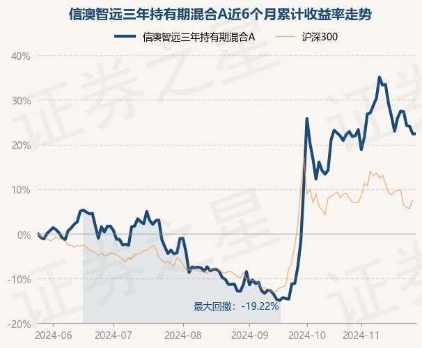 证券之星消息,11月27日,信澳智远三年持有期混合A最新单位净值为0.7298元,累计净值为0.7298元,较前一交易日上涨0.0%。历史数据显示该基金近1个月上涨2.43%,近3个月上涨43.58%,近6个月上涨25.18%,近1年下跌0.69%。该基金近6个月的累计收益率走势如下图: