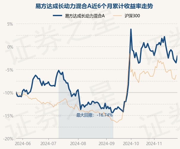 证券之星消息,11月27日,易方达成长动力混合A最新单位净值为1.0804元,累计净值为1.0804元,较前一交易日上涨2.6%。历史数据显示该基金近1个月下跌4.51%,近3个月上涨24.67%,近6个月上涨15.87%,近1年上涨23.47%。该基金近6个月的累计收益率走势如下图: