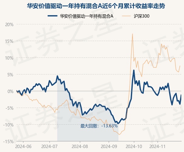 证券之星消息,11月27日,华安价值驱动一年持有混合A最新单位净值为0.7523元,累计净值为0.7523元,较前一交易日上涨2.79%。历史数据显示该基金近1个月下跌2.43%,近3个月上涨3.52%,近6个月下跌1.25%,近1年上涨3.2%。该基金近6个月的累计收益率走势如下图: