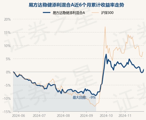证券之星消息,11月27日,易方达稳健添利混合A最新单位净值为0.9588元,累计净值为0.9588元,较前一交易日上涨1.0%。历史数据显示该基金近1个月下跌2.09%,近3个月上涨9.09%,近6个月上涨0.89%,近1年上涨5.12%。该基金近6个月的累计收益率走势如下图: