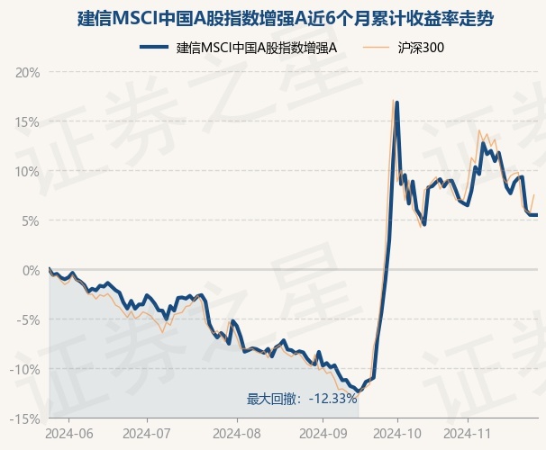 证券之星消息,11月27日,建信MSCI中国A股指数增强A最新单位净值为1.1607元,累计净值为1.4217元,较前一交易日上涨0.0%。历史数据显示该基金近1个月下跌1.57%,近3个月上涨17.84%,近6个月上涨7.21%,近1年上涨9.34%。该基金近6个月的累计收益率走势如下图:
