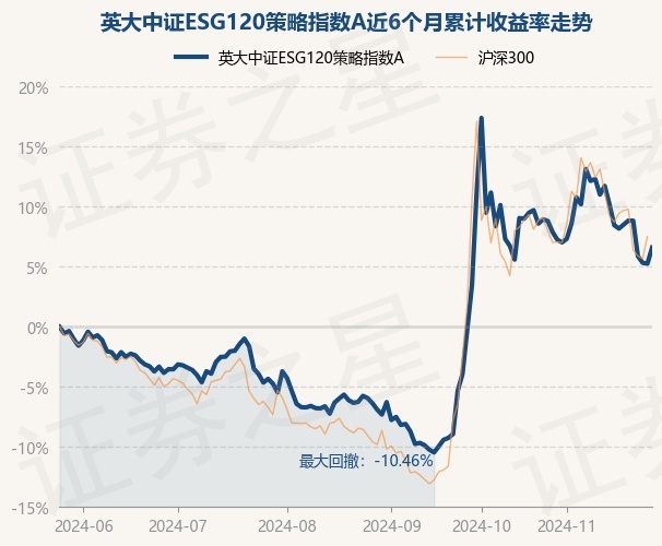 证券之星消息,11月27日,英大中证ESG120策略指数A最新单位净值为0.9644元,累计净值为0.9644元,较前一交易日上涨1.28%。历史数据显示该基金近1个月下跌2.15%,近3个月上涨13.83%,近6个月上涨6.6%,近1年上涨12.24%。该基金近6个月的累计收益率走势如下图:
