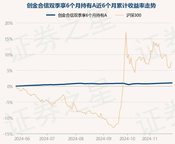 证券之星消息,11月27日,创金合信双季享6个月持有A最新单位净值为1.1577元,累计净值为1.1577元,较前一交易日上涨0.02%。历史数据显示该基金近1个月上涨0.29%,近3个月上涨0.34%,近6个月上涨1.05%,近1年上涨4.2%。该基金近6个月的累计收益率走势如下图: