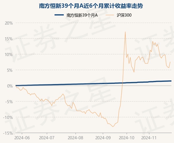 证券之星消息,11月27日,南方恒新39个月A最新单位净值为1.0404元,累计净值为1.1944元,较前一交易日上涨0.0%。历史数据显示该基金近1个月上涨0.38%,近3个月上涨0.82%,近6个月上涨1.46%,近1年上涨2.61%。该基金近6个月的累计收益率走势如下图: