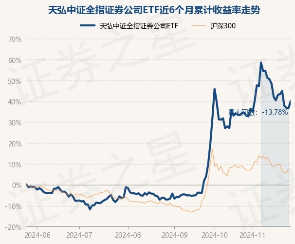 证券之星消息,11月27日,天弘中证全指证券公司ETF最新单位净值为1.0834元,累计净值为1.0834元,较前一交易日上涨2.42%。历史数据显示该基金近1个月上涨4.14%,近3个月上涨50.62%,近6个月上涨40.01%,近1年上涨25.57%。该基金近6个月的累计收益率走势如下图: