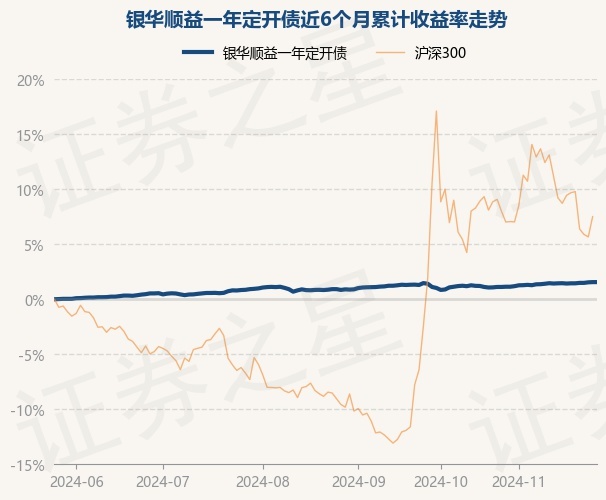 证券之星消息,11月27日,银华顺益一年定开债最新单位净值为1.0155元,累计净值为1.0955元,较前一交易日上涨0.0%。历史数据显示该基金近1个月上涨0.44%,近3个月上涨0.7%,近6个月上涨1.56%,近1年上涨4.44%。该基金近6个月的累计收益率走势如下图: