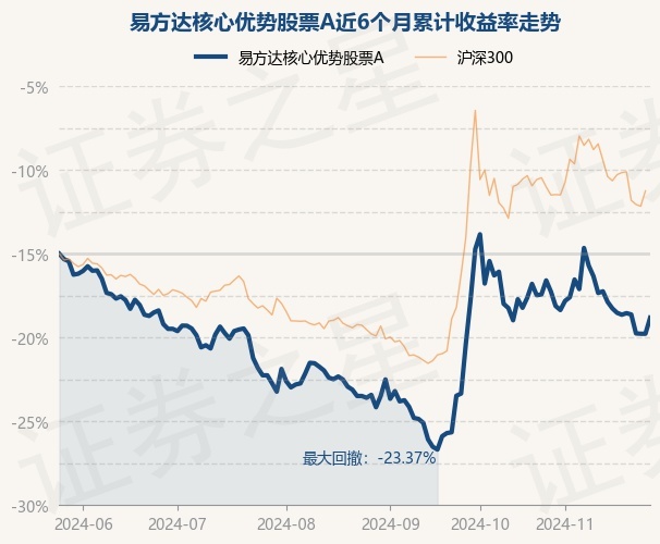 证券之星消息,11月27日,易方达核心优势股票A最新单位净值为0.695元,累计净值为0.695元,较前一交易日上涨2.12%。历史数据显示该基金近1个月下跌2.92%,近3个月上涨11.08%,近6个月下跌7.63%,近1年下跌0.84%。该基金近6个月的累计收益率走势如下图: